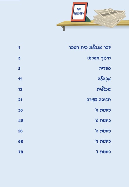 מה בעיתון? דבר מנהלת בית הספר 1 חינוך חברתי 3 ספריה 5 מקהלה 11 אנגלית 12 חטיבה צעירה 21 כיתות ב' 36 כיתות ג' 48 כיתות ד' 56 כיתות ה' 68 כיתות ו' 78