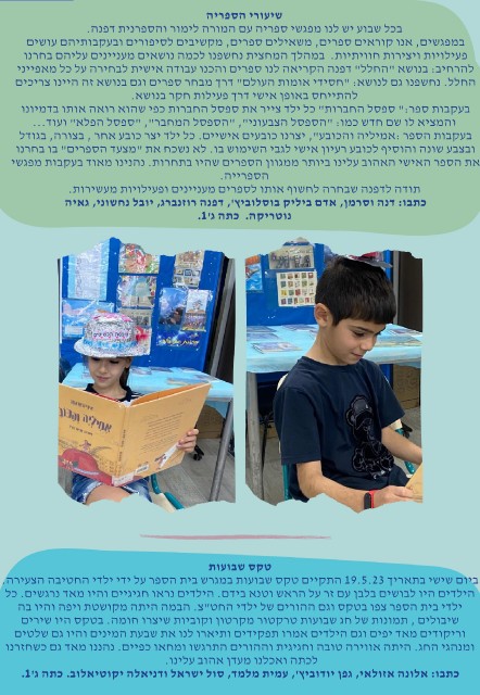 תודה לדפנה שבחרה לחשוף אותו לספרים מעניינים ופעילויות מעשירות.