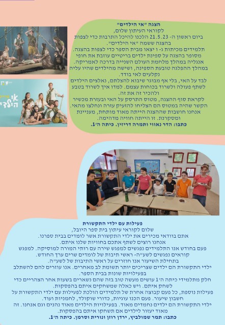 שלום לקוראי עיתון בית ספר היובל,