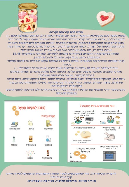 נשמח לספר לכם על פעילויות האפייה שלנו עם תלמידי כיתה ה' ,1הכיתה המשלבת שלנו )-: