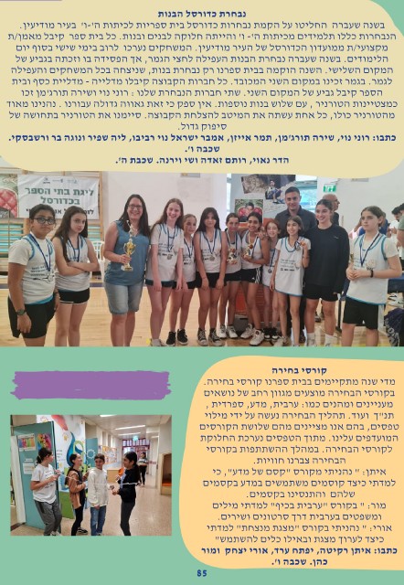 הלימודים .בשנה שעברה נבחרת הבנות העפילה לחצי הגמר ,אך הפסידה בו וזכתה בגביע של
